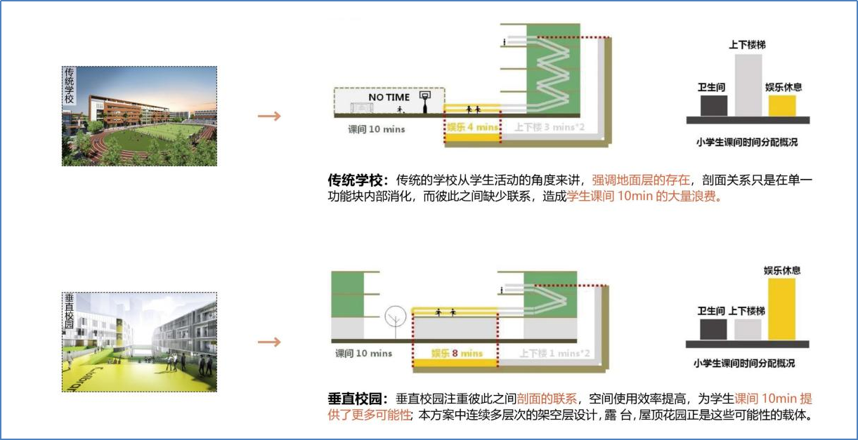 项目周边交通便捷,生活便利,人口密集,自然景观丰富,为打造“绿色校园”和“文化校园”提供了良好的基础。项目组通过连廊设计,将不同空间相互串联,打造多层次的立体花园景观,在平面与垂直方向上创造最大化的交往平台。利用屋顶平台设置公共空间,将空间还给学生,创造以互动为核心的自然课堂等设计手法打造多元一体化校园,建成后将为龙华区师生提供一个寓教于乐的理想乐园。