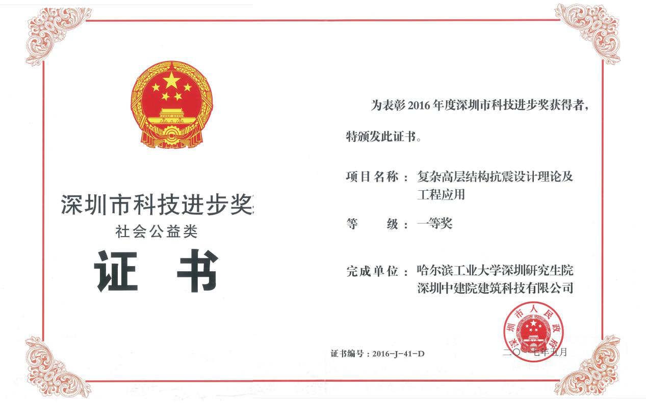 一是坚持自主创新,科技成果获得重大奖项。由深圳中建院和哈尔滨工业大学(深圳)合作完成的课题《复杂高层结构抗震设计理论及工程应用》获2016年度深圳市科技进步奖一等奖、2017年度广东省科学技术奖一等奖。